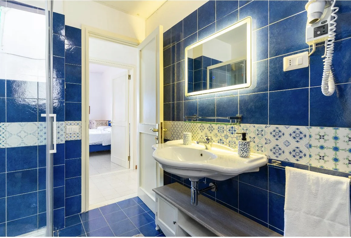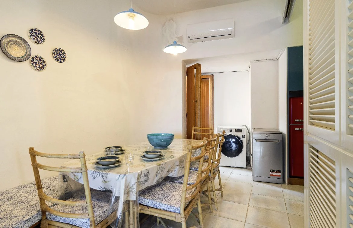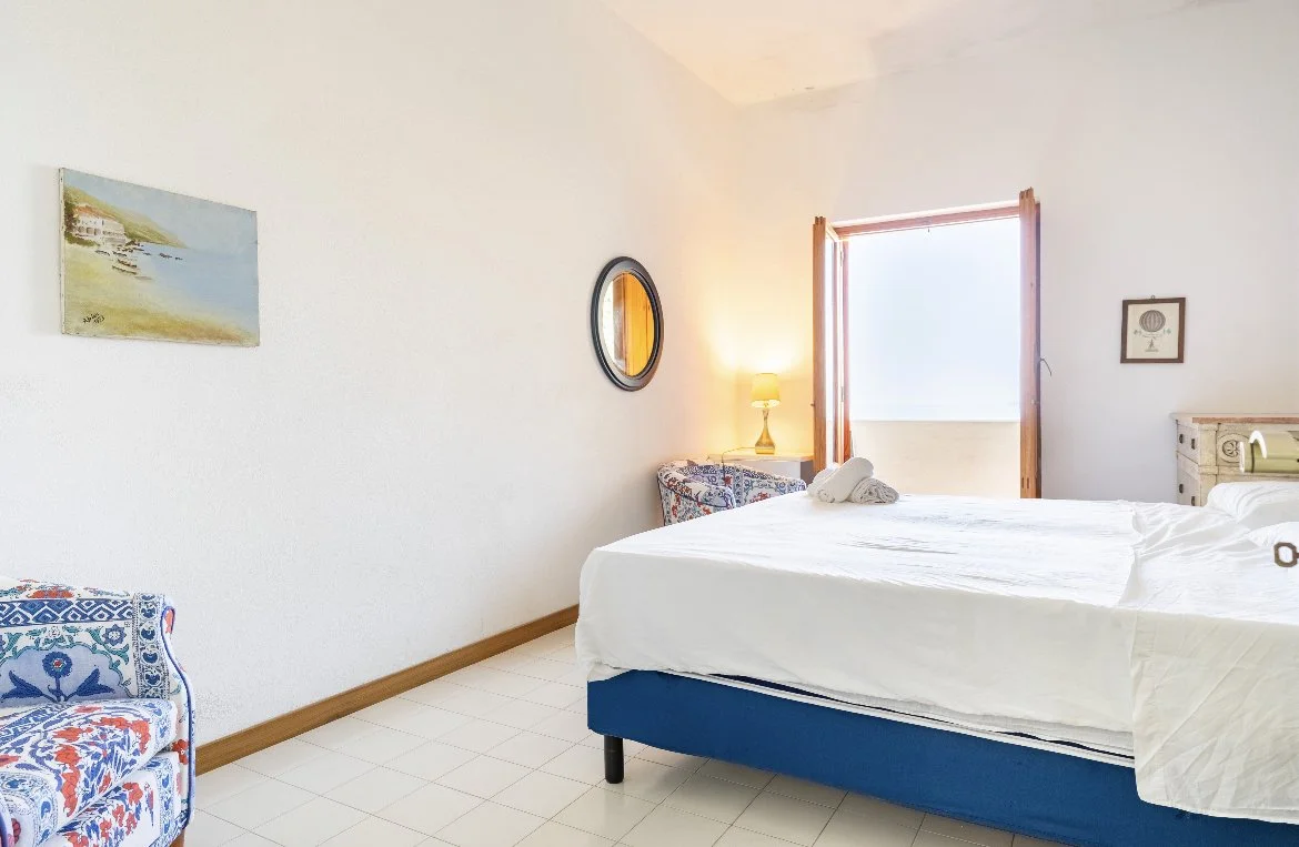 It features 3 bedrooms: one double, one twin with either a double bed or two singles, and a room with a bunk bed and a single bed, accommodating a total of seven guests. Additionally, one or two cribs for small children can be added, as well as camping beds for children. There are 2 bathrooms, one en suite with the double bedroom and the other in the hallway.